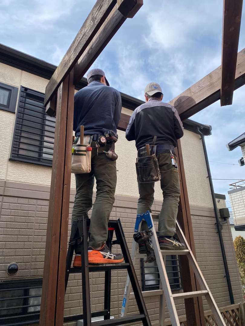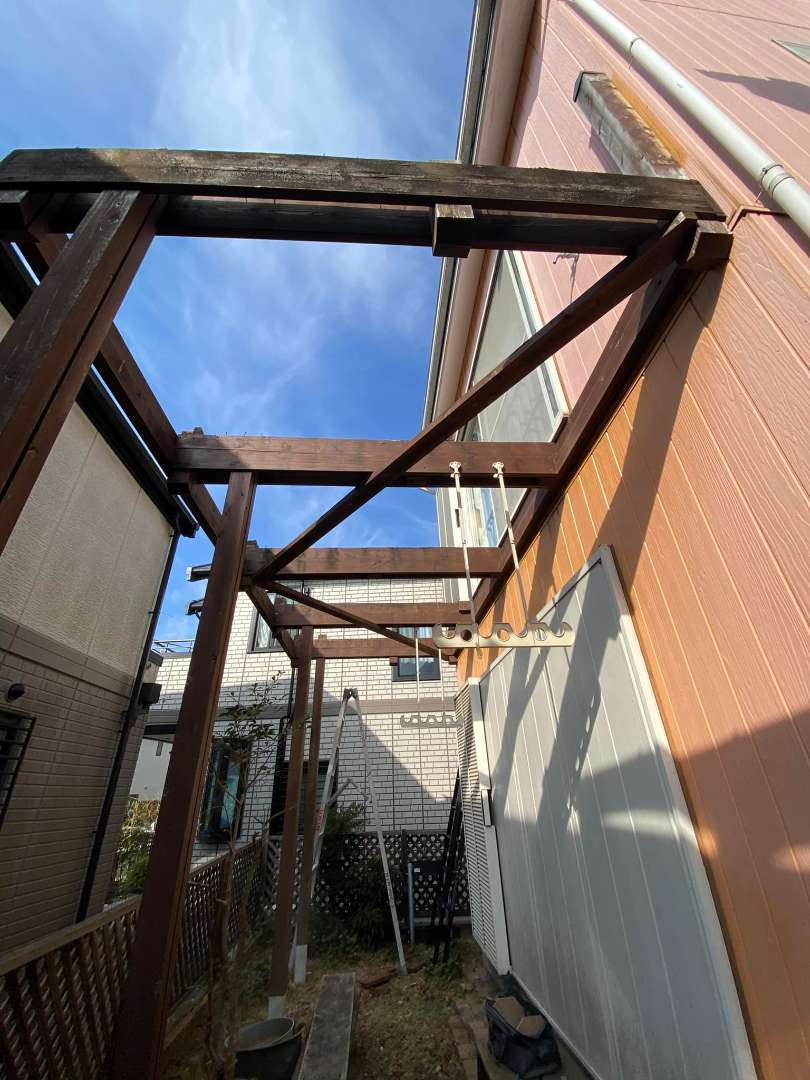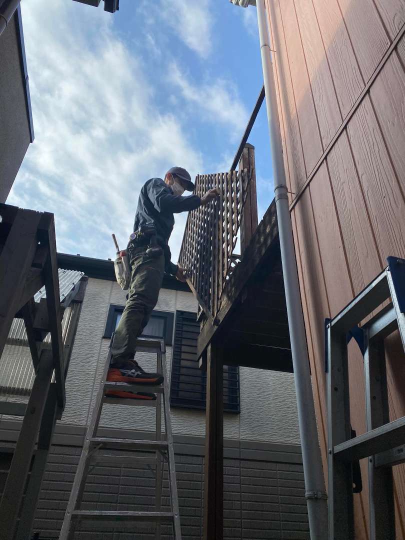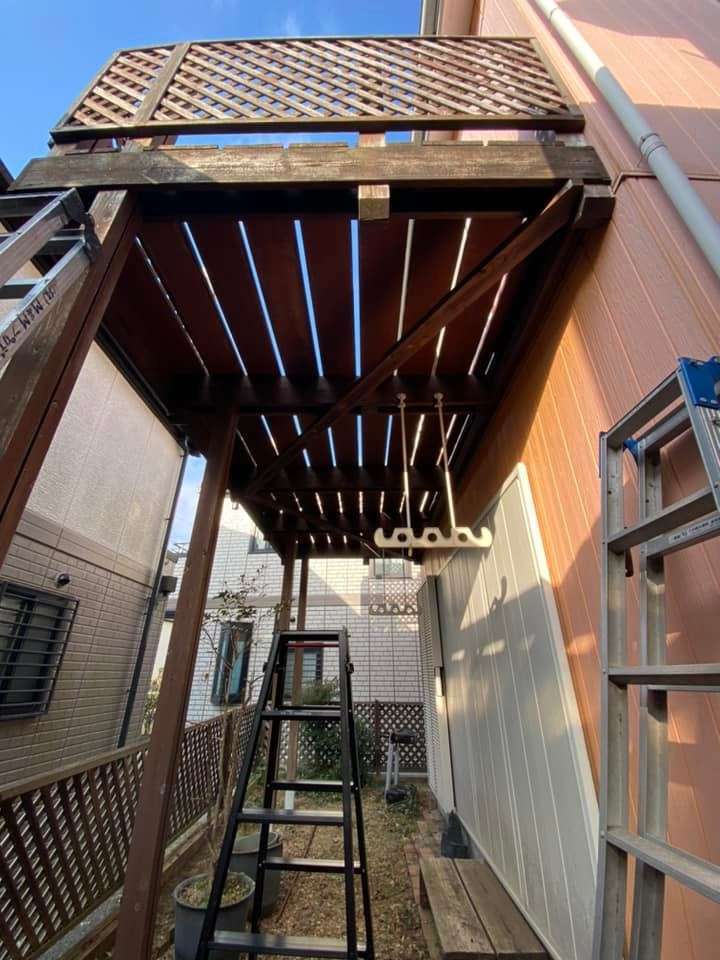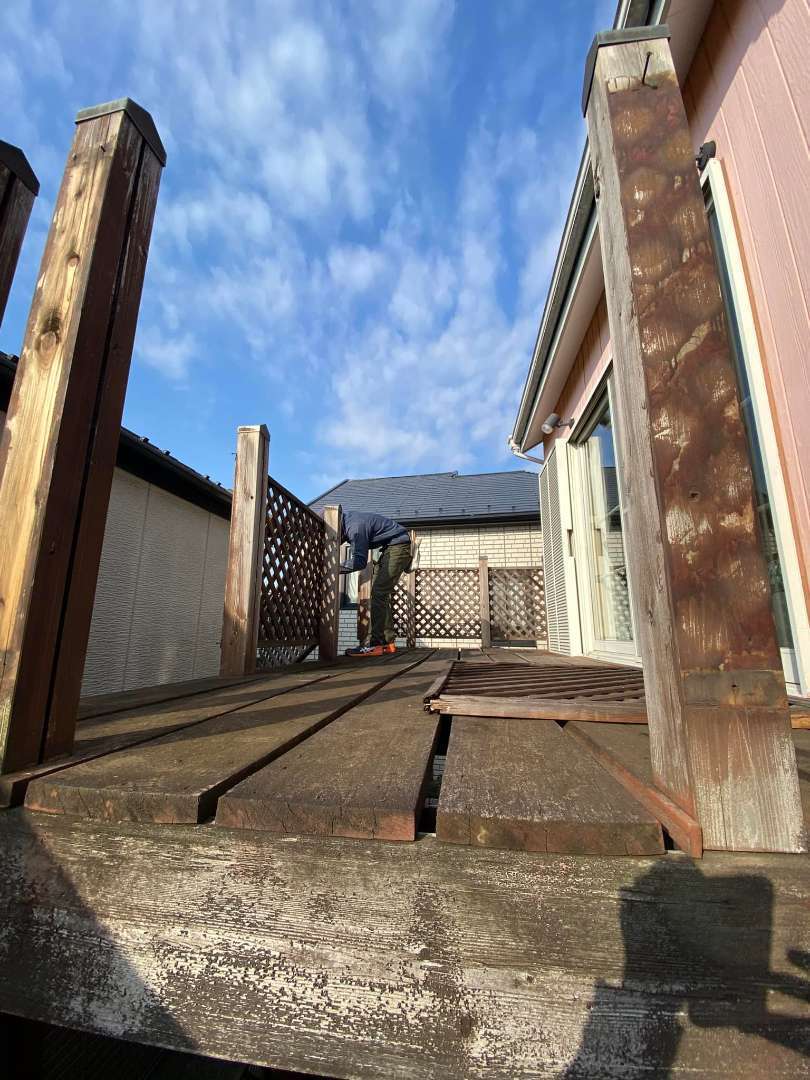 戸建て 内装リフォーム 東京都 小金井市 ベランダ改修工事 木製のフェンスとベランダは朽ちて危ないので撤去してベランダはアルミに変えます。ベランダを撤去すると当初の色が出てきました。オレンジは色が飛んでピンクに変わってしまいました。濃い色は色が飛びやすいそうです。でも、色の変化を楽しむのも一つですね。家の周りのフェンスとベランダのウッドデッキの解体です。 場所 東京都小金井市 前の施工事例 戸建て 神奈川県 川崎市 玄関リフォーム 次の施工事例 戸建て 東京都小金井市 板金工事